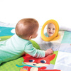 Zachęcaj dziecko do leżenia na brzuszku poprzez angażowanie dziecka w jedną z funkcji i aktywności maty. Wskazuj na ilustracje na macie, zwróć uwagę dziecka na drzewko a ku-ku i satynowe wstążki lub umieść lusterko pod odpowiednim kątem, aby dziecko mogło zbadać własne odbicie.
