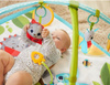 Zabawne lusterko, liść a ku-ku i inne elementy maty wydłużą przebywanie dziecka w pozycji na brzuszku, przygotowując je jednocześnie do zdobywania umiejętności, które czekają na dziecko.