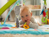 Podczas leżenia na plecach dziecko będzie cieszyć się zwisającymi nad nim zabawkami i będzie ćwiczyć uderzanie i chwytanie.