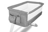 Łóżeczko z odpiętą ścianką może służyć jako dostawka, a po podniesieniu ścianki - jako wolnostojące łóżeczko. Przewiewna siatka po obu stronach zapewnia odpowiednią cyrkulację powietrza oraz pozwala na obserwację dziecka.