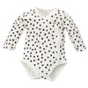 Mięciutkie body z długim rękawkiem w kolorze ecru, w czarne, drobne trójkąciki. Uszyte z bawełny 100%. Rozpinane na antyalergiczne, bezniklowe napki. Trójkąciki nadrukowane zostały bezpieczną metodą farby wodnej, która nie uczula wrażliwej skóry dziecka. Z udziałem body w trójkąciki będzie można komponować wiele ciekawych i modnych stylizacji.