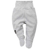 Mięciutkie półśpiochy uszyte z bawełny interlock 95%, w kolorze szary - melanż. Szeroki, szary ściągacz ładnie utrzymuje ubranko na ciele dziecka. Naszywka na lewej nogawce podkreśla charakter kolekcji Happy Day.