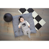 Mięciutkie śpiochy uszyte z bawełny 100% w drobne czarno – kremowe paseczki. Po środku śpiochów wszyta jest czarna kieszonka z wypukłym nadrukiem. Śpioszki rozpinane są na ramionkach i w kroku na bez niklowe napy. Nadruki wykonane zostały trwałą i bezpieczną metodą farb wodnych.