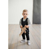 Urocze ogrodniczki uszyte z mięciutkiej bawełny 100% w kolorze czarno–szarego pepperu. Rozpinane w kroczku i na ramionkach, co ułatwia przewijanie dziecka. W środku wszyta bawełniana podszewka w kolorze ecru, w małe czarne trójkąciki. Ogrodniczki to strzał w dziesiątkę dla aktywnych maluszków, ponieważ plecki będą zawsze zakryte. Ponadto dziecko będzie się w nich świetnie prezentować.