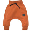 Spodnie typu pumpy z dresówki w kolorze rdzawego brązu. W pasie znajdują się ozdobne, czarne sznureczki, które nie mają funkcji regulacji. Z przodu dwie kieszonki, idealne sprawdzą się na dziecięce skarby. Na lewej nogawce umieściliśmy naszywkę ze skóry ekologicznej z napisem BEAR CLUB. Nieuciskający ściągacz w pasie utrzymuje ubranko w odpowiednim miejscu, gdy dziecko bawi się lub ćwiczy raczkowanie i chodzenie. Od rozmiaru 74 w pasie wszyta jest gumka. Pumpy doskonale sprawdzą się na jesienno-zimowe chłody. Swobodny krój spodenek zapewnia maluszkowi wygodę w czasie codziennych aktywności. Pumpy możesz dowolnie łączyć z innymi ubrankami z kolekcji Bear’s Club, tworząc ciekawe stylizacje.