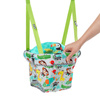 Specjalny system mocowania zapewnia bezpieczną zabawę dziecku oraz nie wymaga skomplikowanego montażu. Solidny zacisk ościeżnicy zapewnia bezpieczne dopasowanie do drzwi, natomiast paski umożliwiają regulację w zależności od wysokości i ciężaru dziecka. Klamra posiada dodatkowy pasek zabezpieczajacy.