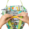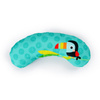 Zestaw zawiera miękką poduszkę - zagłówek, która stanowi dodatkowe zabezpieczenie dla mniejszych dzieci podczas skakania, a także może stanowić dodatkową podporę dla starszych dzieci np. podczas podróży. Cały skoczek został zaprojektowany, aby niewiele ważył oraz żeby można było go łatwo spakować i zabrać ze sobą w podróż. Zdecydowane kolory o wysokim kontraście i różne wzory stymulować będą wzrok dziecka, a zróżnicowane materiały - zmysł dotyku.