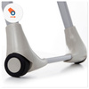 Tylne nogi posiadają kółka, dzięki którym swobodnie przesuniesz krzesełko wszędzie tam gdzie aktualnie chcesz nakarmić Malucha- do salonu, jadalni czy ogrodu. Natomiast o stabilizację podczas posiłków zadbają antypoślizgowe podkładki na przednich nóżkach i hamulec przy tylnych kółkach.