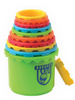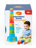 Dziecko ma do dyspozycji 11 elementów o różnej wielkości i kolorach, każdy oznaczony cyferką. Maluch może ułożyć z kubeczków wieżę, której wysokość to, aż 73 cm! Dzięki temu, że kubeczki są ponumerowane dziecko układa je po kolei i uczy się liczyć. Dodatkowo podstawa wieży ma kształt zamku, który może służyć jako pojemnik do przechowywania klocków. Nakładka na zamek pełni funkcję sortera, dzięki czemu maluch może dopasowywać klocki kształtem. Kubeczki posłużą także jako zabawka do piaskownicy lub wody. Zabawka wpływa na kształtowanie koordynacji wzrokowo-ruchowej, zdolności motorycznych, uczy dopasowywania kształtów oraz uczy liczb.