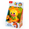 Zwierzak odtwarza aż 25 różnych dźwięków i melodii, z którymi zabawa stanie się jeszcze weselsza! Na brzuszku żyrafy znajdują się przyciski, aktywujące światełko i poszczególne dźwięki. Uszka zwierzaka także wydają odgłos, a jest nim terkotanie, które dziecko usłyszy za każdym razem, gdy przekręci je w prawą lub w lewą stronę.