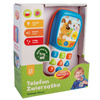 Edukacyjny, dwujęzyczny (polski/angielski) telefonik, dzięki któremu maluszek rozpocznie naukę cyfr oraz rozpoznawania kształtów. Kiedy dziecko naciśnie zieloną słuchawkę usłyszy zabawną rozmowę zwierzątek, naciskając czerwoną może ją zakończyć i zacząć zabawę od nowa. Dodatkową atrakcją są zabawne dźwięki, melodie oraz efekty świetlne pojawiające się na ekranie telefonu. Tego typu zabawka zagwarantuje dziecku naukę poprzez zabawę.
