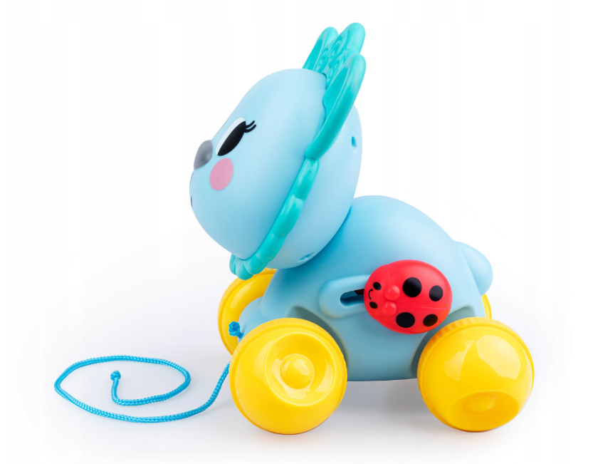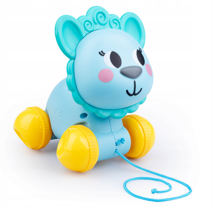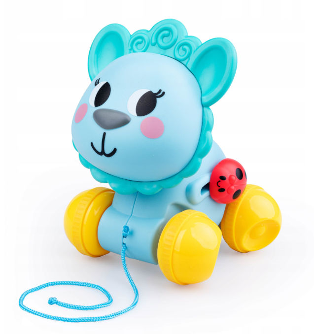 Lama na sznureczku to wymarzony kompan do zabawy. Kiedy maluch prowadzi rączką zwierzaka, ten jedzie, zabawnie kołysząc przy tym głową na boki. Lama wyposażona jest w cztery kółeczka o nieregularnym kształcie, co zapewnia ciekawy efekt wizualny. Dodatkowo, można je rozpędzić, aby postawiony na podłodze zwierzak pojechał samodzielnie do przodu. Na boku lamy siedzi biedroneczka, która przy przesuwaniu wydaje terkoczący odgłos.