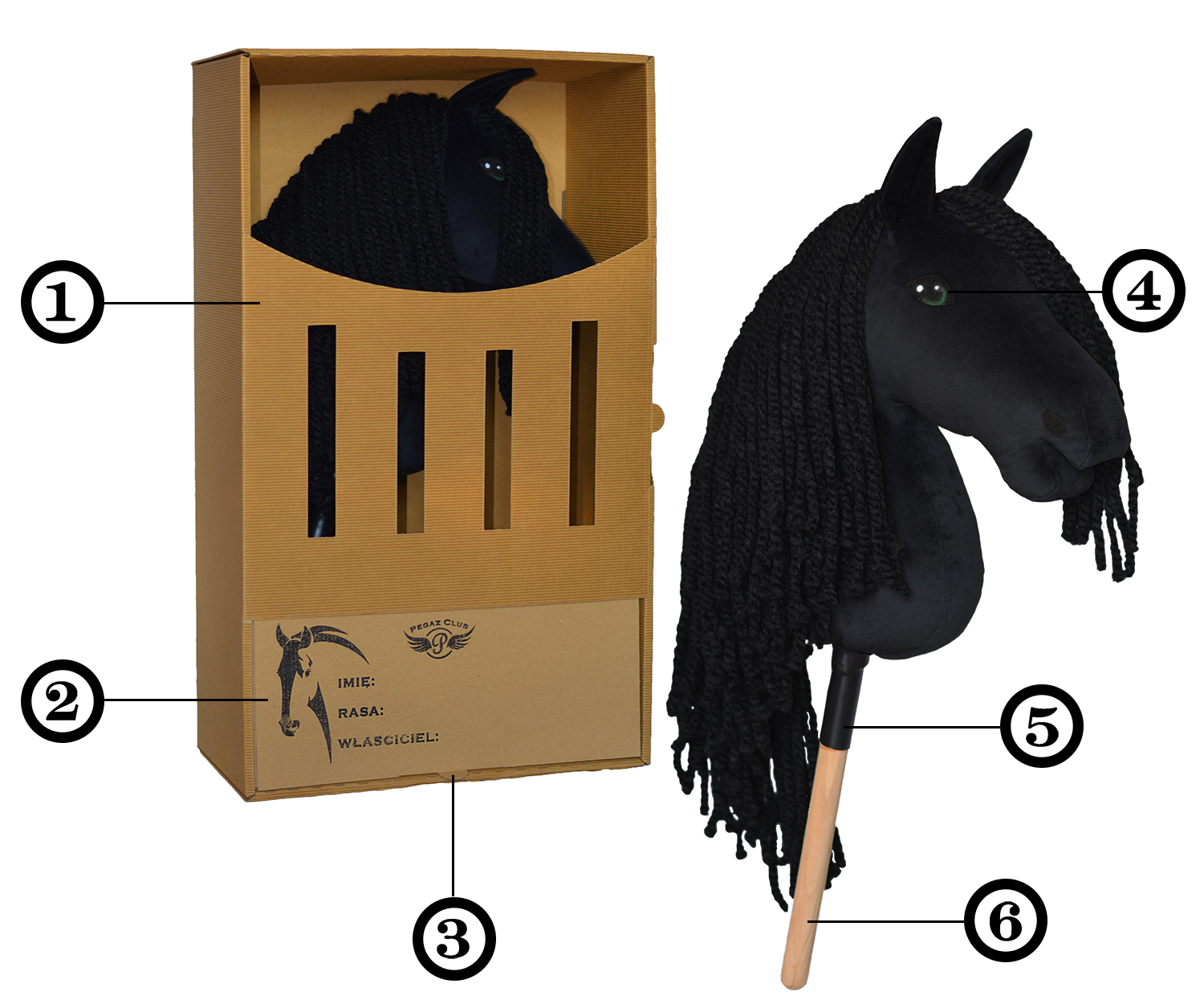 ✨ PEGAZ CLUB – Oryginalny Hobby Horse A3 Fryzyjski kary (czarny)